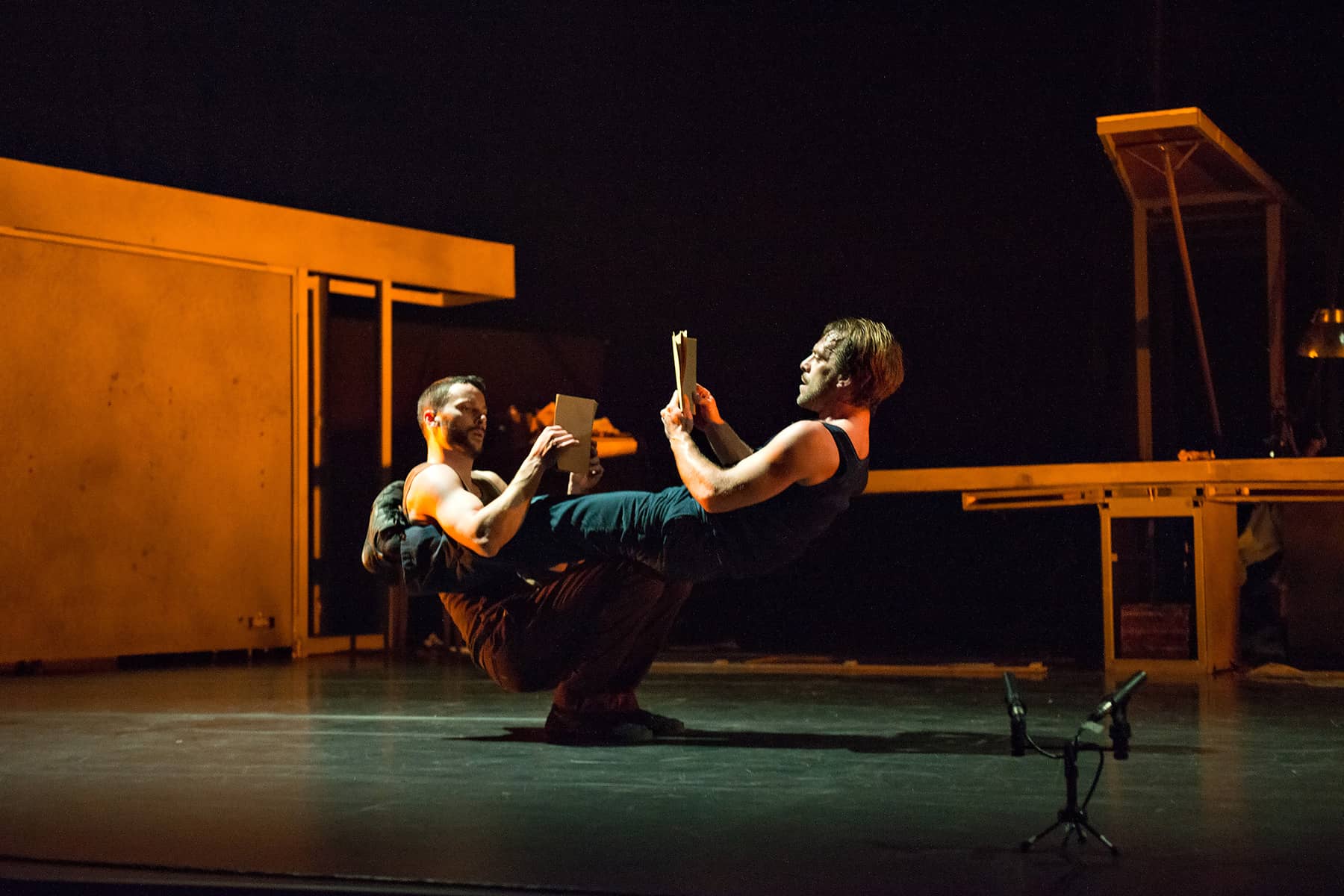 Thomas Guerry est danseur et chorégraphe, Camille Rocailleux, musicien et compositeur. Mais les étiquettes rendent mal la réalité, tant ces deux-là s’attachent à les gommer pour faire dialoguer disciplines et langages artistiques. Un échange fécond qui fonde la démarche artistique de la compagnie depuis sa création à Lyon en 2001. Les spectacles, véritablement écrits à 4 mains, convoquent tout à la fois la musique et la danse, le théâtre musical et les percussions corporelles. On retrouve dans leurs influences ce qui fonde leur art : le mélange des genres et les ruptures de ton. La mélancolie côtoyant l’humour, voire le burlesque (l’univers des films muets, de Keaton et Chaplin n’est pas loin…)…