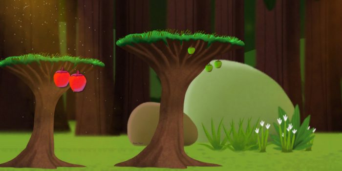L’application nous plonge dans un univers de jeu vidéo. Tout est expliqué pas à pas. Il s’agit de ramasser des pommes, de les compter, puis de les troquer contre différents objets : pièces de monnaie, diamants, pommiers…
