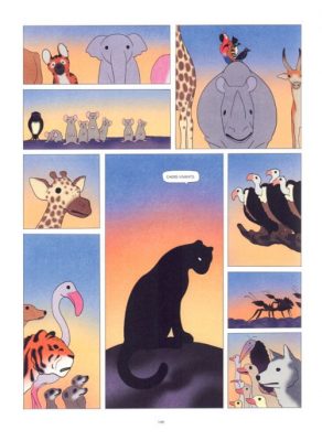 Quand à la panthère, son discours finale regroupant tout les protagonistes de l’album, laisse entrevoir ce qui pourrait être le début de l’Humanité…..la boucle est bouclée.