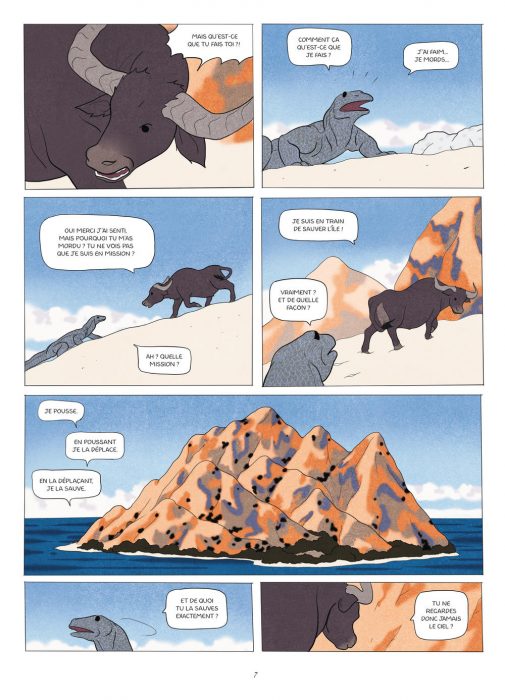 Quel est le point commun entre un buffle qui tente de déplacer une île, une autruche qui se trouve laide ou bien encore un bernard-l’hermite qui cherche la coquille parfaite? La sagesse! En effet Jérémie Moreau (La saga de Grimr, Penss et les plis du monde…) nous propose une succession d’histoires courtes mettant en scène des animaux à la manière des Fables d’Esope ou de celles de La Fontaine. En choisissant des animaux, l’auteur peut aborder des thématiques philosophiques propre à l’Humain. Les particularités physiques et psychologiques de ces animaux face aux obstacles de la nature entrent en résonance avec nous : un singe doit faire face au deuil, un éléphant cherche à perpétuer la mémoire collective pour éviter l’oubli…