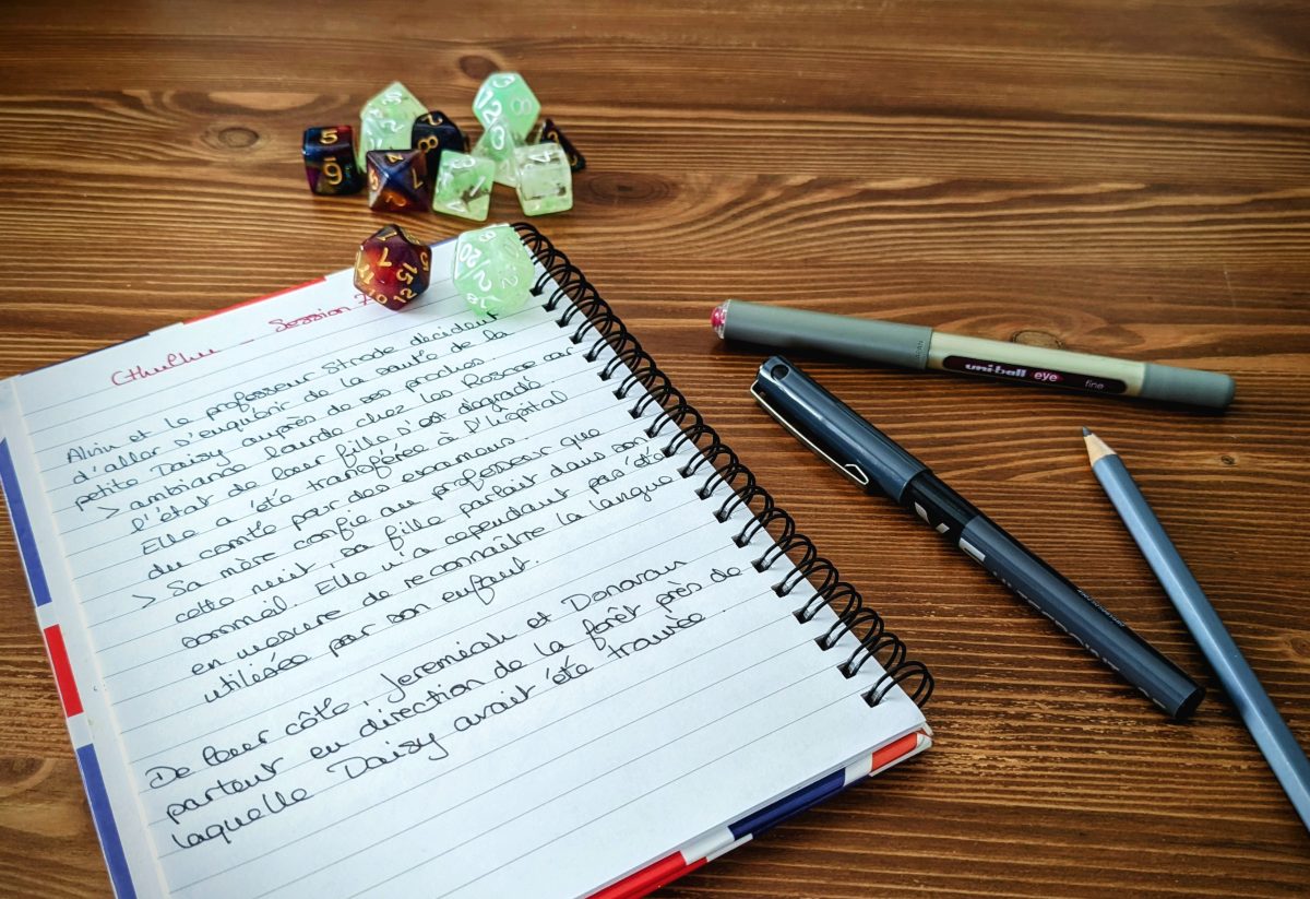 C’est également de cette manière que fonctionne le jeu de dark fantasy Ironsworn : si celui-ci peut largement être joué de manière « traditionnelle » en collectif, l’auteur Shawn Tomkin a pensé aux joueurs solitaires en fournissant des « oracles » dans le livre de règles, disponible gratuitement sous format numérique et en français. Ce même livre vous conseillera d’ailleurs lors d’une session de « [conserver] des notes tenues au niveau de détail qui vous convient. ». Toutes les formes de notes sont ainsi possibles, y compris littéraires.