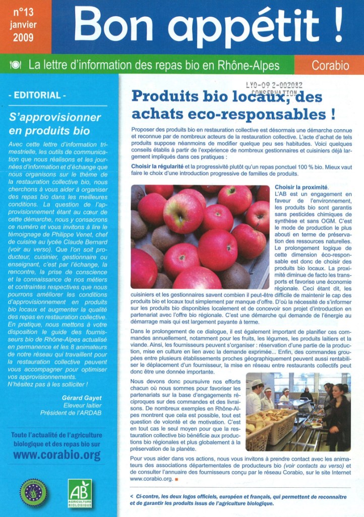 Bon appétit ! La lettre d’information des repas bio en Rhône-Alpes.
