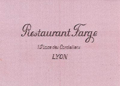 Fondé en 1853, le restaurant Farge se dressait aux Cordeliers. Haut lieu de la gastronomie lyonnaise, l'enseigne imposait une cuisine de qualité. Cette maison, plus que centenaire, ferma définitivement ses portes en mars 1977.