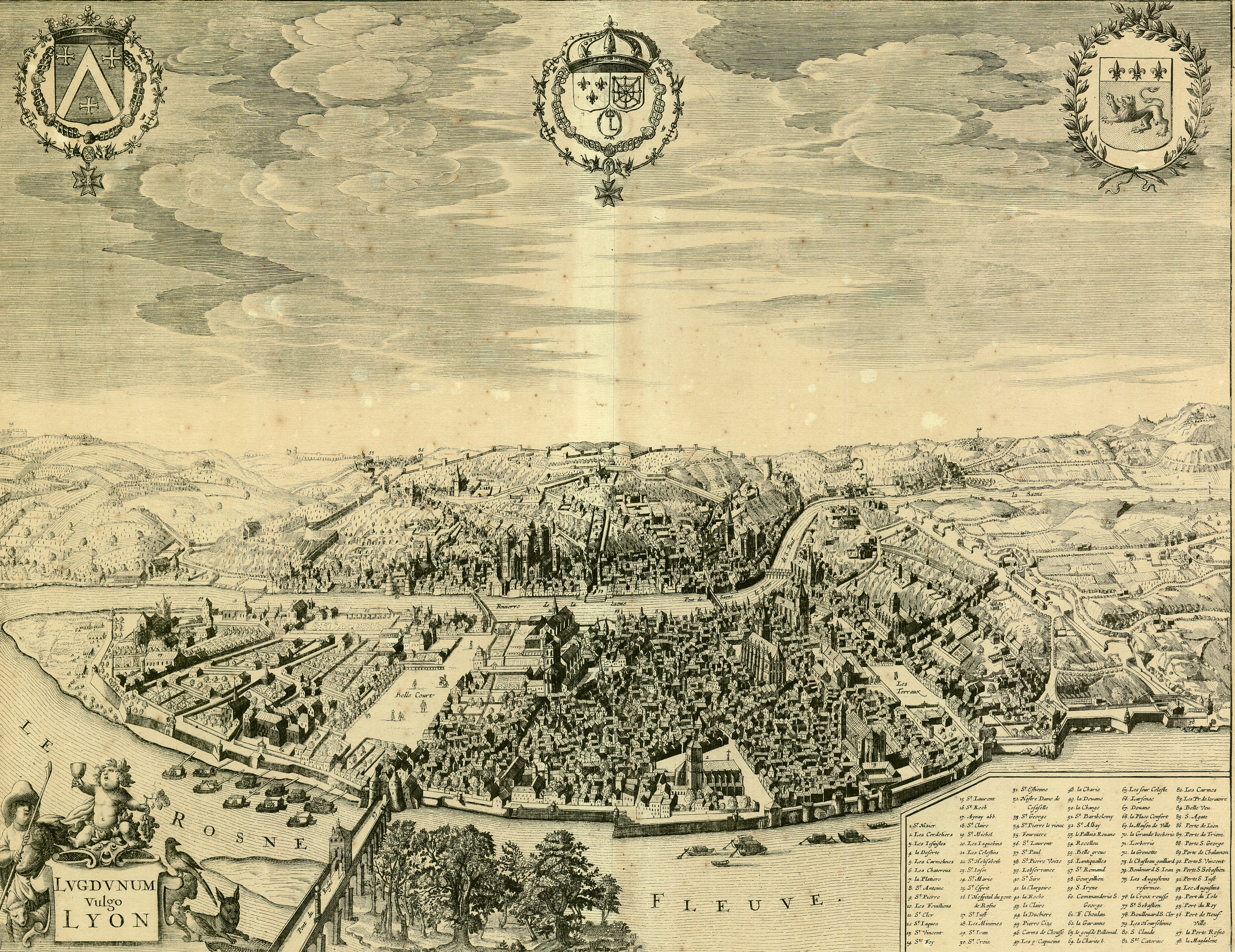 Plan de Lyon [1656], Zeiller d’après Merian. Autre exemplaire.