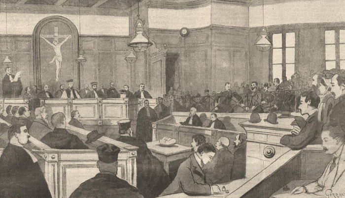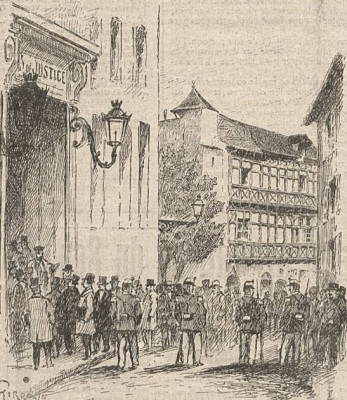 Le procès de Vacher s’ouvre le 26 octobre 1898 au palais de justice de Bourg. Le juge d’instruction, semble-t-il, n’y assista pas. La déposition de Lacassagne accable l’accusé dont la responsabilité ressort attestée malgré les efforts de la Défense qui cherche à en faire porter une partie au médecin responsable de sa remise en liberté après son séjour à l’asile de Saint-Robert. Le verdict, rendu à la fin de la journée du 28 est sans surprise : Vacher est reconnu responsable de l’assassinat de Victor Portalier avec les circonstances aggravantes de la préméditation. La sentence, soutenue par la jubilation de la foule présente, prévoit donc l’exécution de l’assassin.
