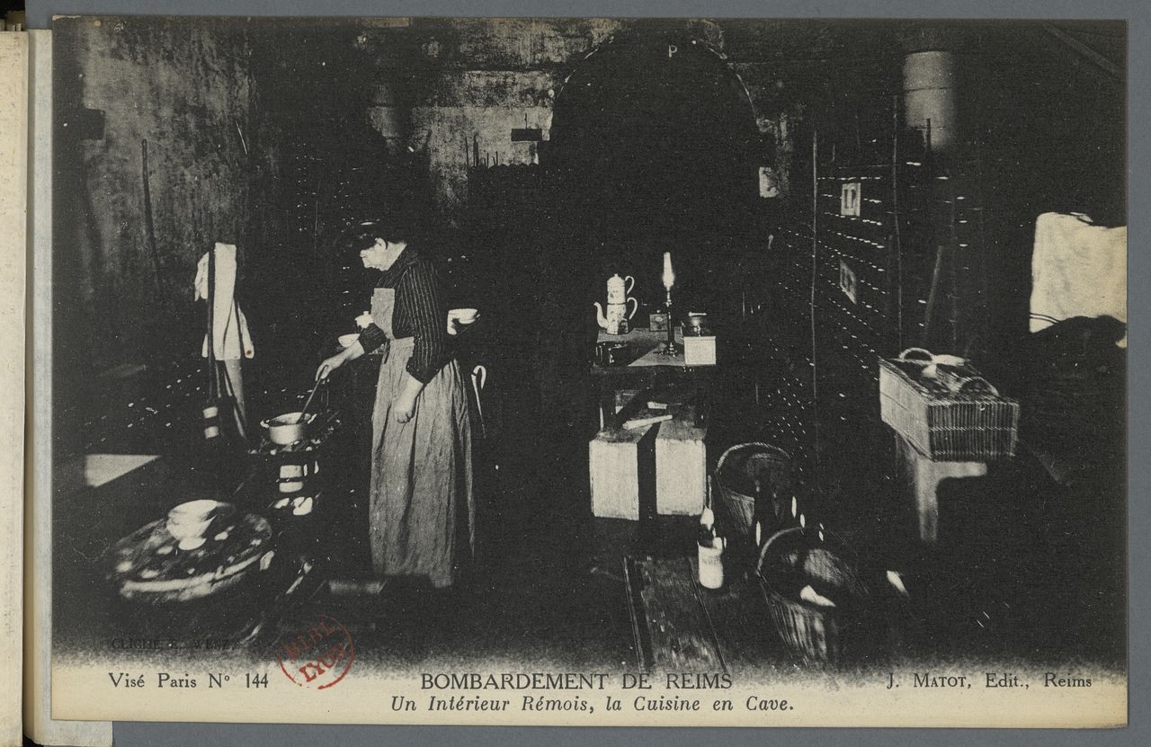 Un intérieur rémois, la cuisine en cave, coll. BmL, Fonds de la Guerre 14-18