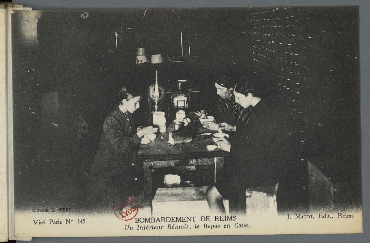 Un intérieur rémois, le repas en cave. Coll. BmL, Fonds de la Guerre 14-18