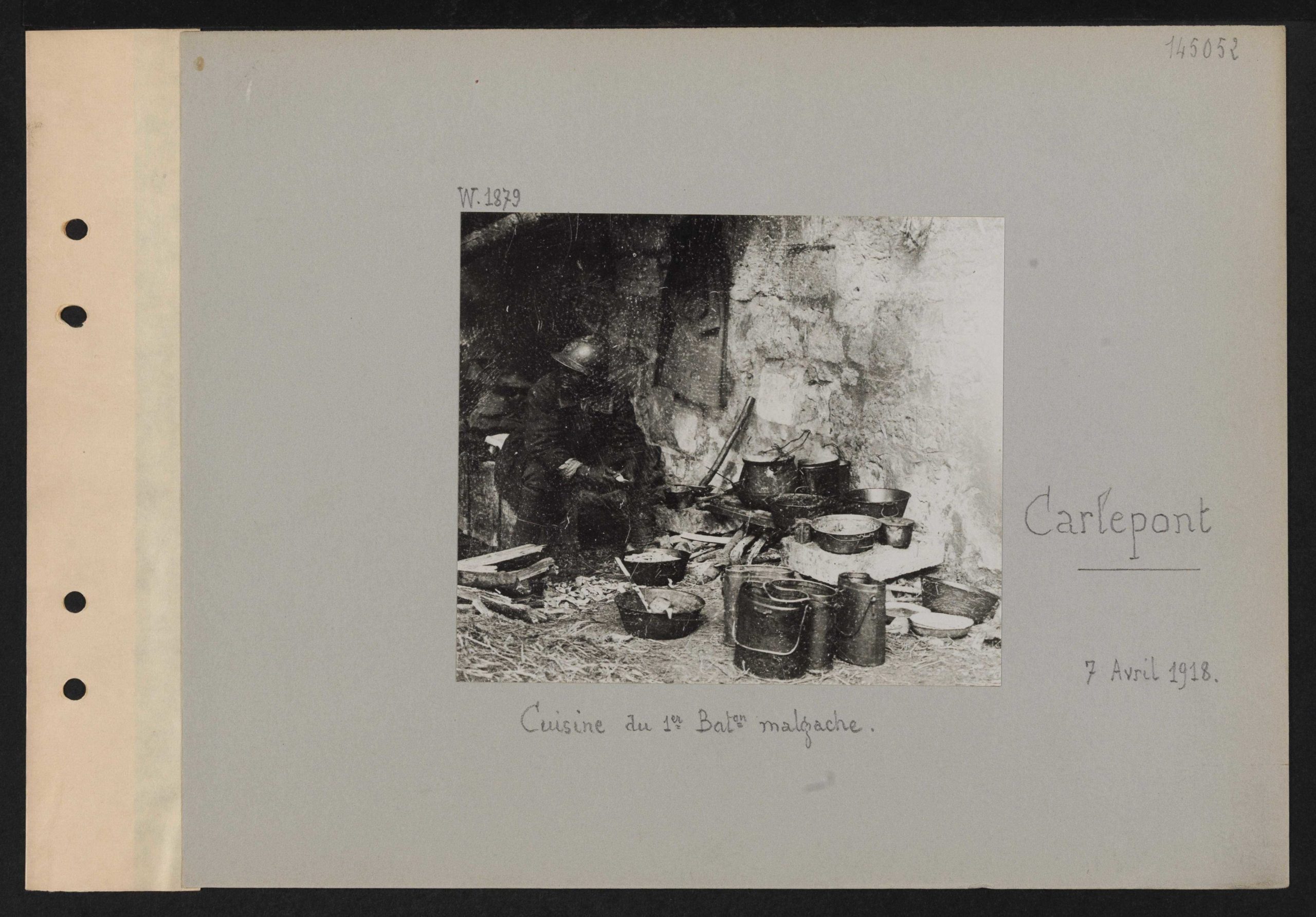 Chaque compagnie disposait de sa cuisine mobile, dite communément la cuisine roulante. Elle était généralement placée en deuxième ou troisième ligne où il était plus facile de trouver des lieux abrités pour l’installer. C’était là qu’étaient aménagées des aires de repos des combattants, à l’air libre quand le terrain n’était pas exposé à l’artillerie ennemie ; ou dans des salles souterraines plus ou moins vastes et assez profondes pour résister aux obus. Après leur temps de repos qui variait entre 36 et 48 heures ; les soldats se retiraient dans ces abris souterrains tout en restant en appuis et renfort des premières lignes. Ces lieux laissaient cependant à désirer quant à la sûreté et surtout à l’hygiène, où les soldats cohabitaient avec les rats. Louis Barthas en fit l’amère expérience en Argonne. Il note dans ses « Carnets de guerre » :