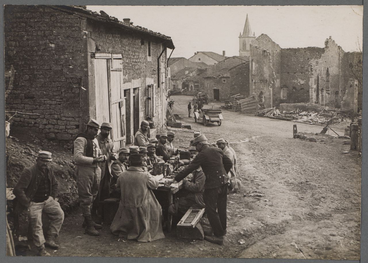 Les réjouissances gourmandes avaient lieu principalement au cantonnement, là où les soldats se retiraient après leurs séjours en première ou deuxième ligne, loin des duels ou des combats d’artillerie. Le confort n’y était pas de mise, les soldats trouvaient à se loger souvent dans des maisons en ruine, des granges ou des étables ouvertes aux quatre vents, s’ils ne dormaient pas à la belle étoile. C’est toutefois au cantonnement qu’ils pouvaient se détendre un peu.