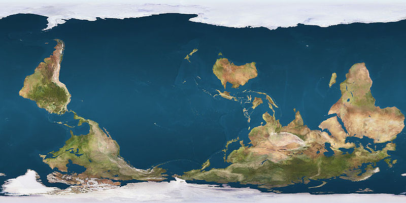 Surnommée “carte inversée” par les Occidentaux, la projection McArthur est celle d’un planisphère plaçant l’Océanie au centre et le Sud en haut. Cette version corrigée de la carte du monde, publiée en 1979, s’avère aussi juste que la projection Mercator, d’un point de vue géographique. En effet, la convention “Nord-Sud” avec le Nord orienté vers le haut peut être remise en cause car il n’existe ni haut ni bas dans l’espace. Son créateur, l’Australien Stuart McArthur, a fait des émules auprès d’autres pays du Sud, qui ont souhaité à leur tour se voir dans la position la plus valorisante du planisphère et ont ainsi créé le mouvement “South up” (Sud en haut).