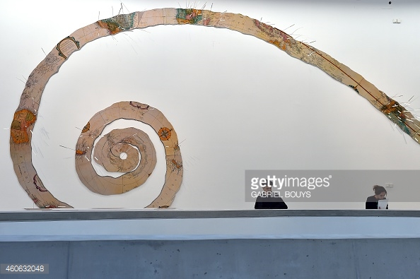 L’oeuvre du célèbre artiste d’origine chinoise Huang Yong Ping est un exemple de déstructuration de l’objet cartographique. Réalisée entre 2000 et 2007, sa Carte du Monde se présente comme un planisphère pelé à la manière d’une orange, dont les continents sont épinglés comme des poupées vaudou. Chacune des 400 aiguilles porte une étiquette désignant toutes les catastrophes naturelles présagées d’ici 2046 par LI Yu, auteure du livre Le Siècle à venir. Pour l’artiste, tous ces mythes sont révélateurs de la crise globale qui menace le monde.